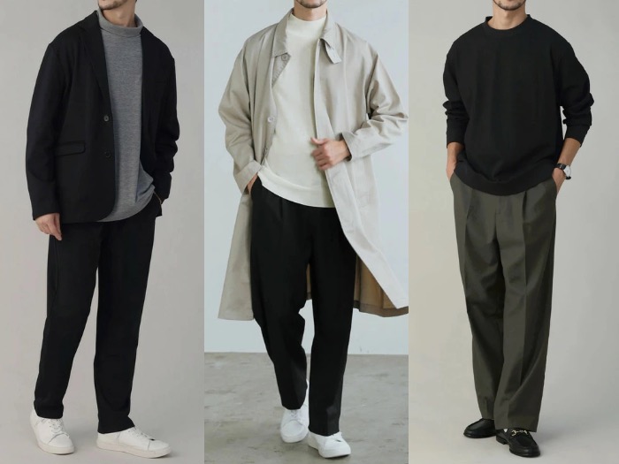 ネイビー、グレー、ブラック、ホワイト、ベージュのベーシックカラーは、40代の大人メンズの強い味方です。これらの色をベースにすることで、着回しが効き、全体に統一感が生まれます。