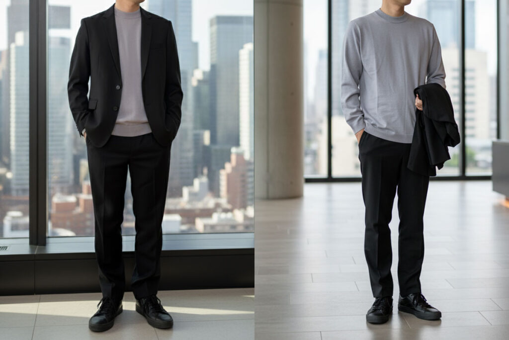 今回ご紹介したAUENの「CODEジャケット」「CODEテーパード」「ハイゲージシルクニット」は、「まず最初に手に入れるべき3点」として、朝のコーディネート時間を最小限にし、仕事も休日も対応できる着回し力で価値を最大化する、まさに時短とお洒落を両立したい男性のためのアイテムです。